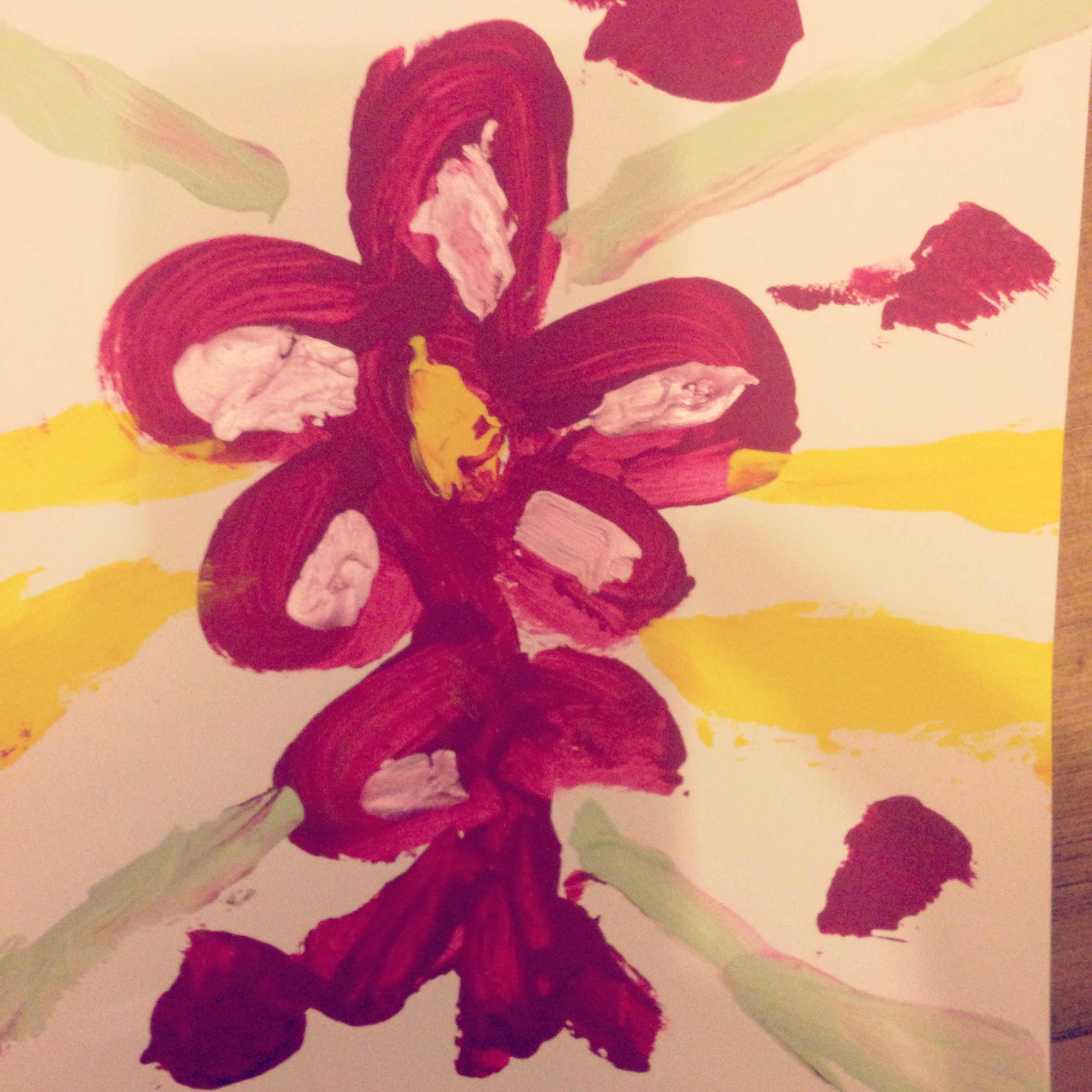 I came home to this beautiful hand painted card! Apparently the munchkin had been planning the card all week, so on Thursday before I got home, with a little help getting the paints out from Mr C, she made me this!