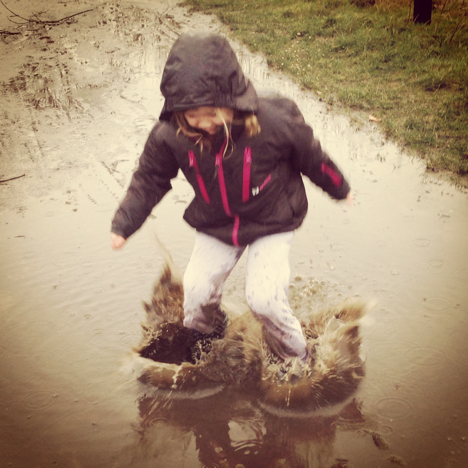 Monday was mine and the munchkins 1st day off together! We went to the library to change some books, then we went to McDonalds for our dinner, her choice, on the way home we stopped at the park. It was chucking it down but it didn’t stop us having fun! We donned our wellies and waterproofs and had a little walk round. The munchkin loves muddy puddles so was completely in her element! To say she was a bit muddy when we got back is an understatement!