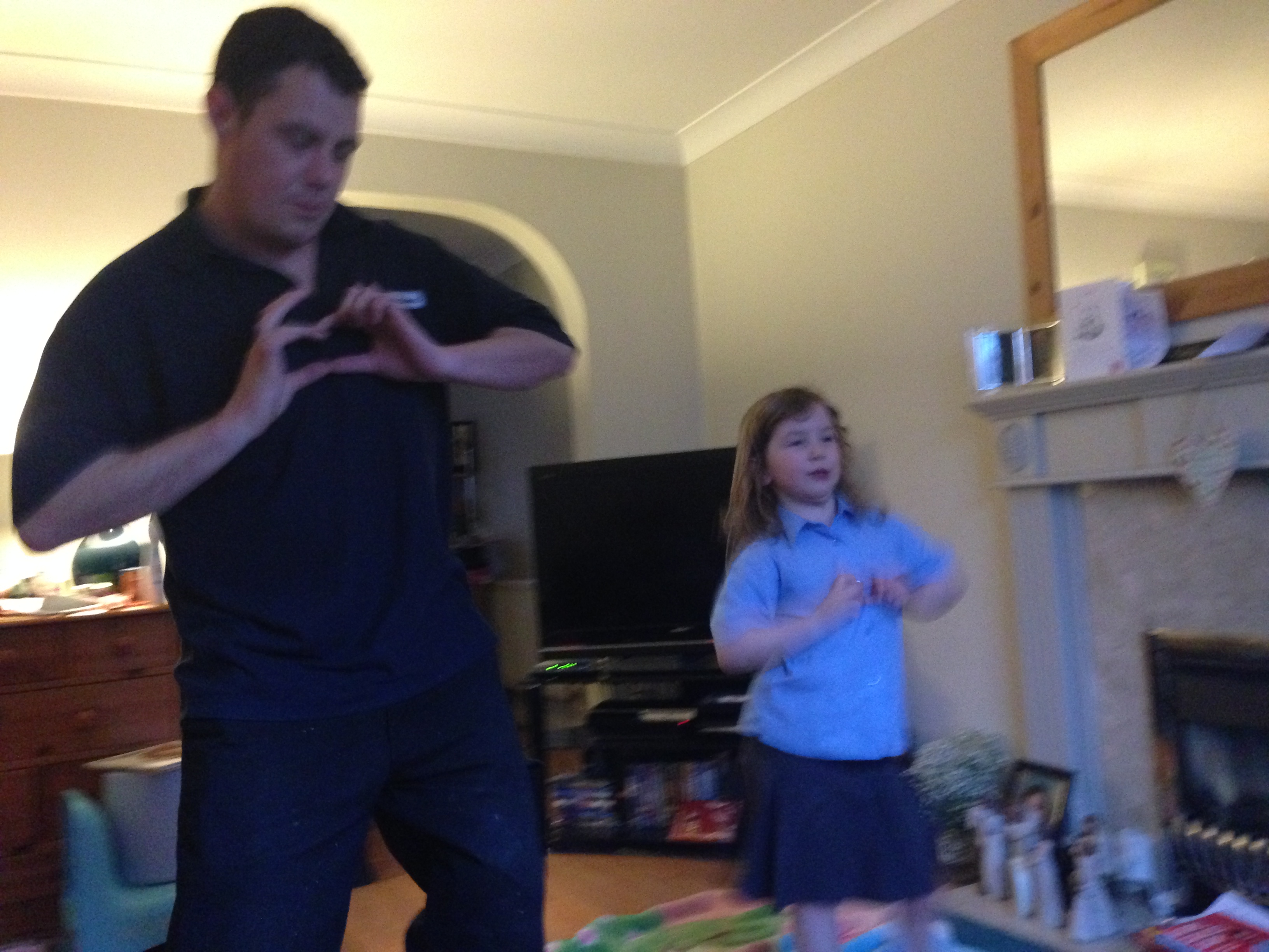 More dancing practise! This time the munchkin roped Mr C in and they practised one of her glee club dances!
