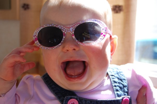 The munchkin loves sunglasses! She has quite a few different pairs. As soon as the sun comes out she puts sunglasses on, she even wears them inside!