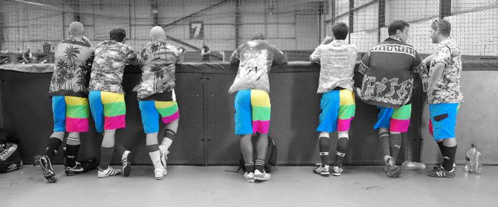 Just 7 guys hanging out at a five a side court with Hawaiian shirts and Bermuda shorts! This picture was taken in August 2010.