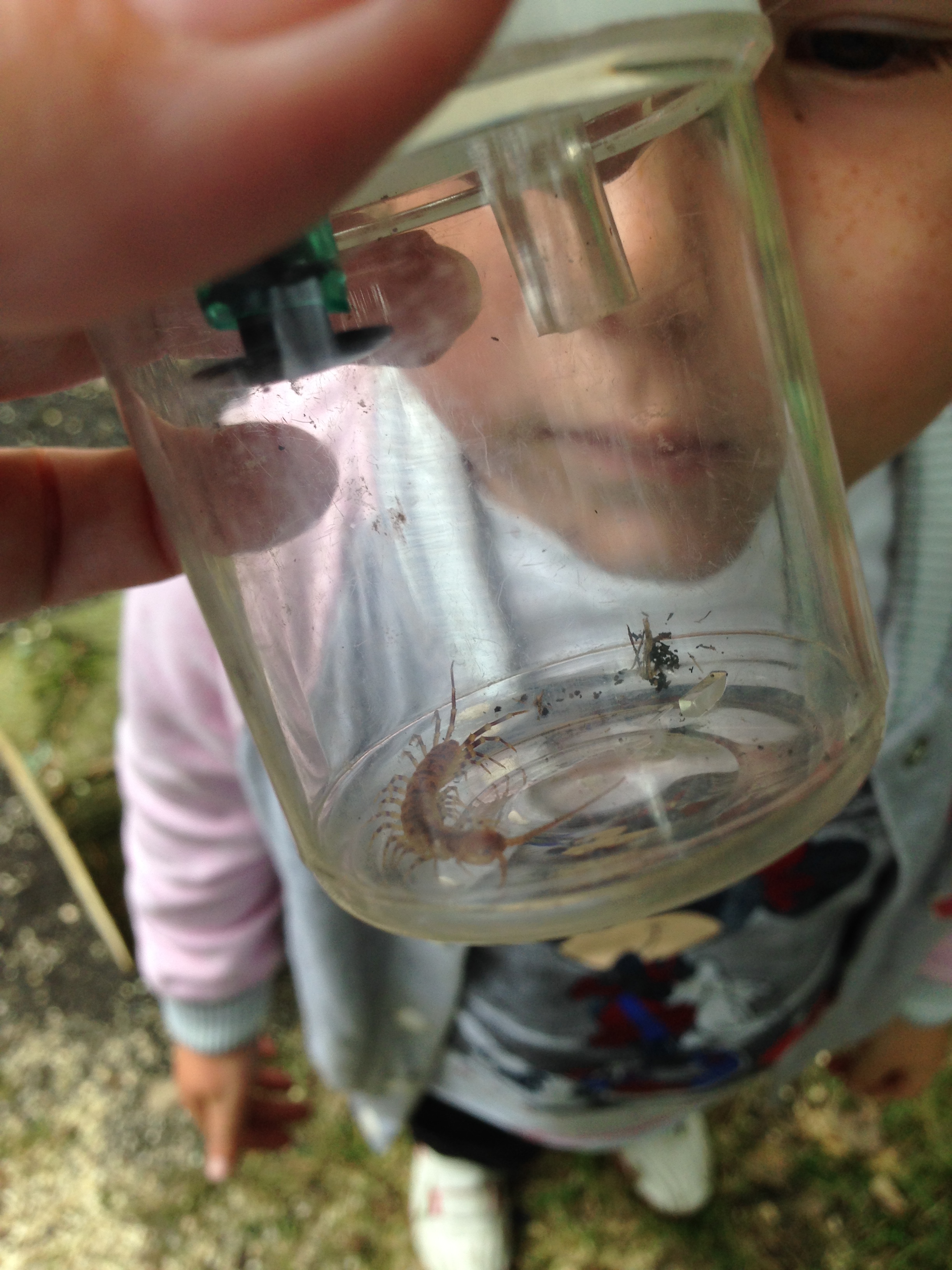 After a little searching the munchkin found a centipede, which couldn’t be sucked into the tube so we had to catch it!