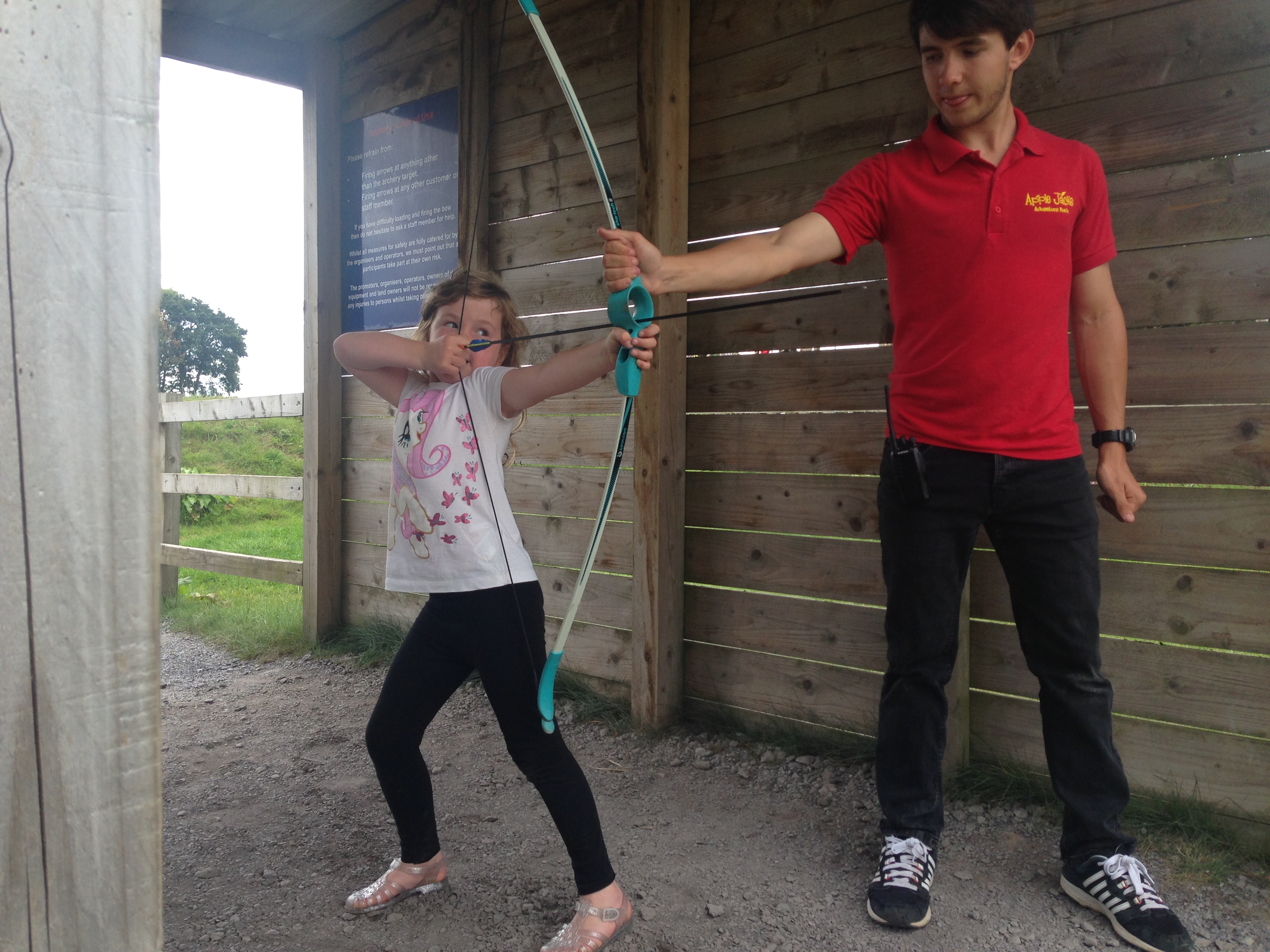 Friday we went to Apple Jacks adventure park (full post to follow), the munchkin tried her had an Archery!