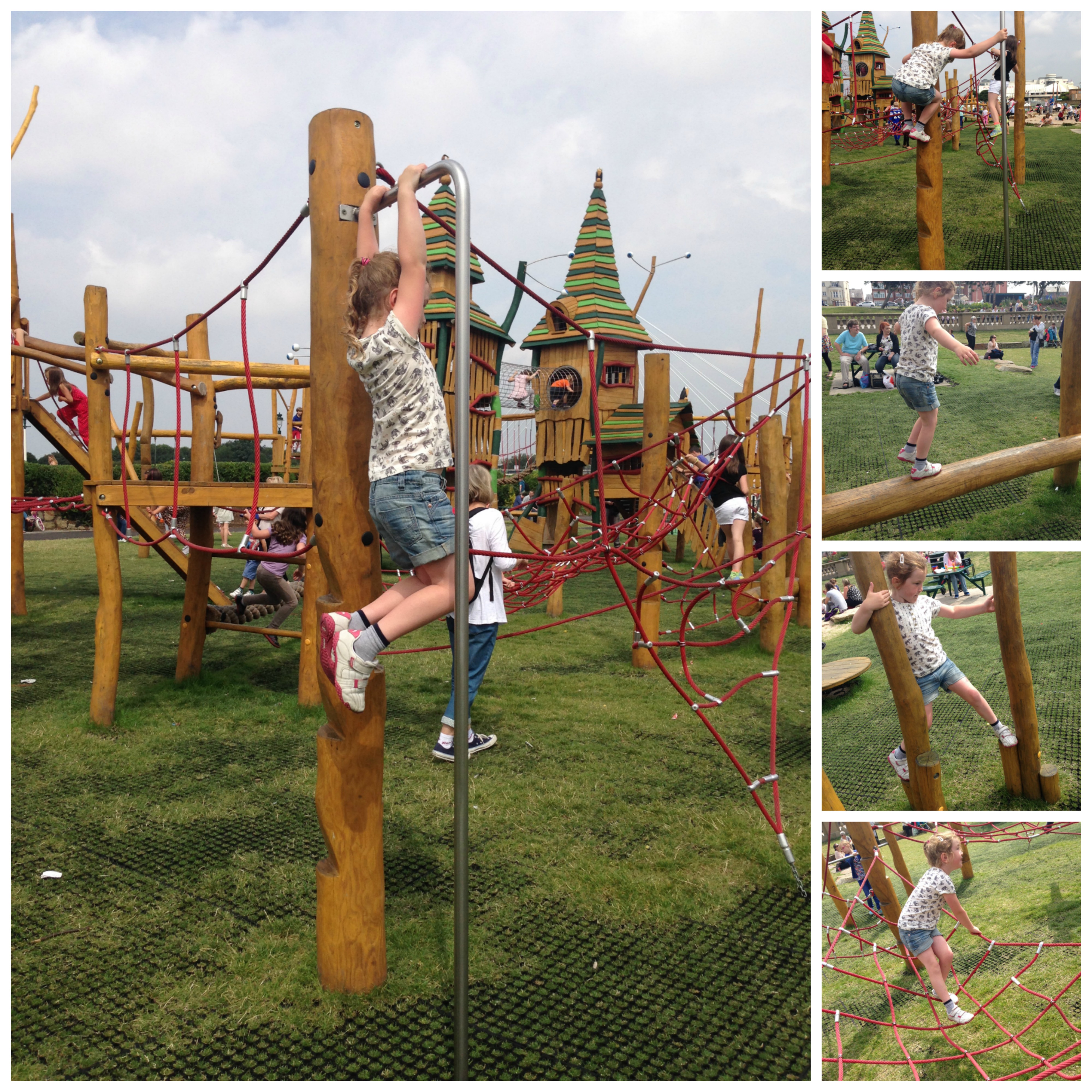 There were picnic tables and plenty of grass for you to sit and set up a picnic. There was a sand pit and a toddler area which looked just as good as the area the munchkin was playing on and a crazy golf, although we didn’t go near there. There were lots of different aparatus, it was really big so we didn’t feel that comfortable letting the munchkin go by herself, she would have been out of sight in parts and some of the climbing things were quite tall, she has absolutely no fear when it comes to climbing, hanging and jumping off things.