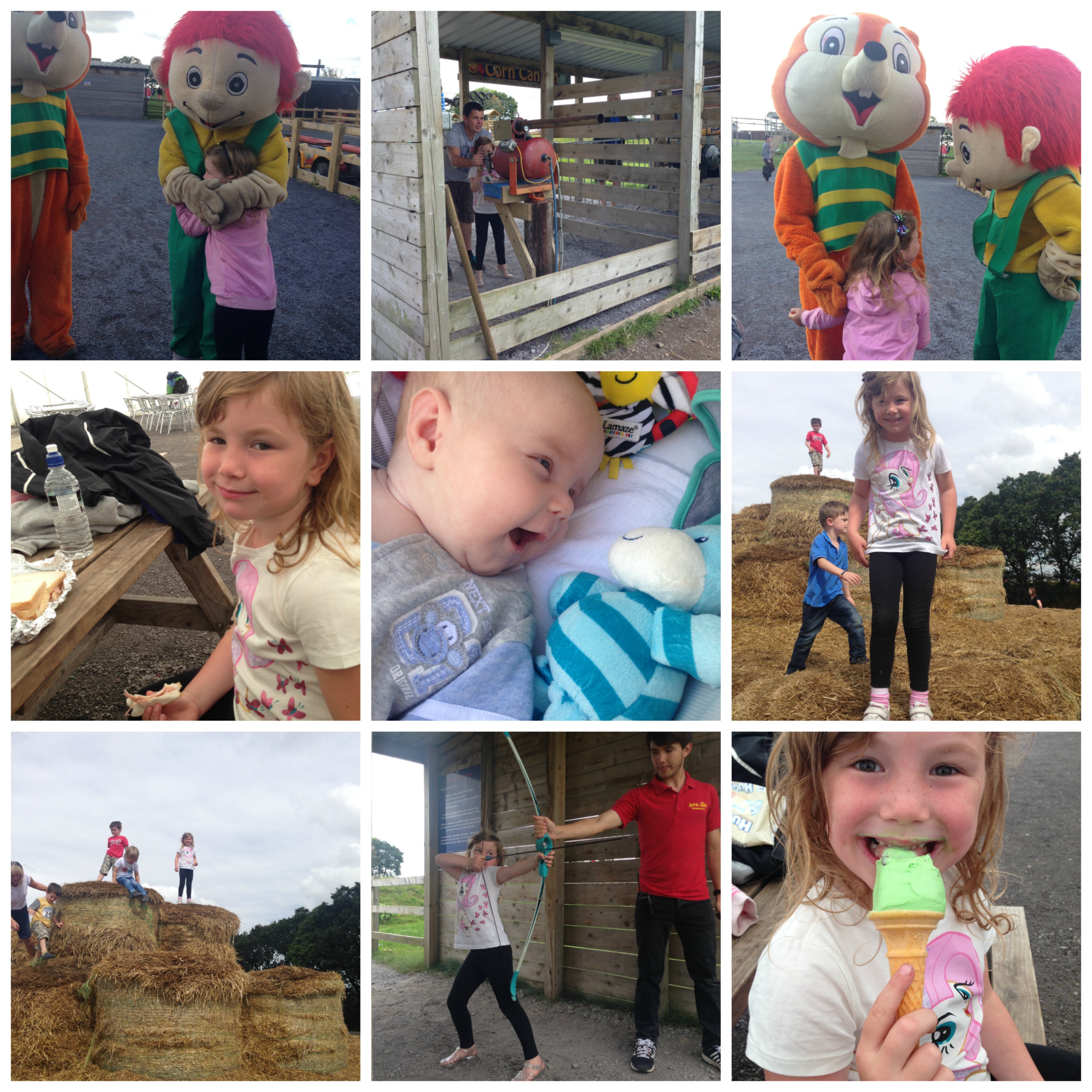 There was lots for the munchkin to do. A hay bale mountain you could climb, Mr C and the munchkin had a race up to the top! Archery, the munchkin was really good at this and kept going back to have another go. Zip wires, climbing frame, tractor ride and a bouncy pillow and a maize maze. There was also skating, which we didn’t try as it said on the information that the kids should be able to skate a little and the munchkin is like Bambi on ice and spends more time crawling around on her knees and a fence maze but we were all mazed out! There was also Go Karts which you had to pay a £1 to have a go of. We did let the munchkin go on these but I was a little disappointed that there was extra cost once you got there.