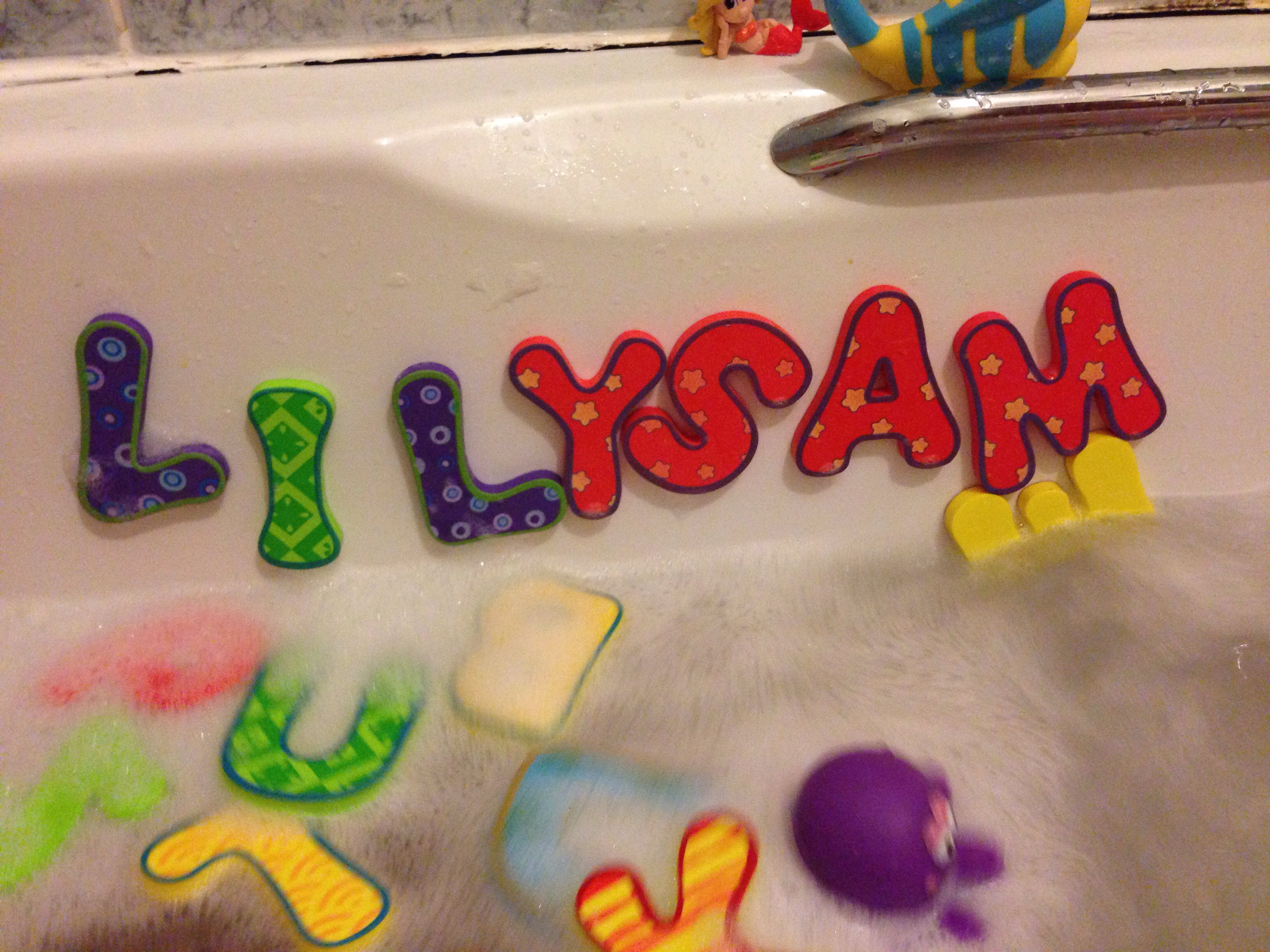 The munchkin went straight for the letters, working out ways of how she could spell their names.