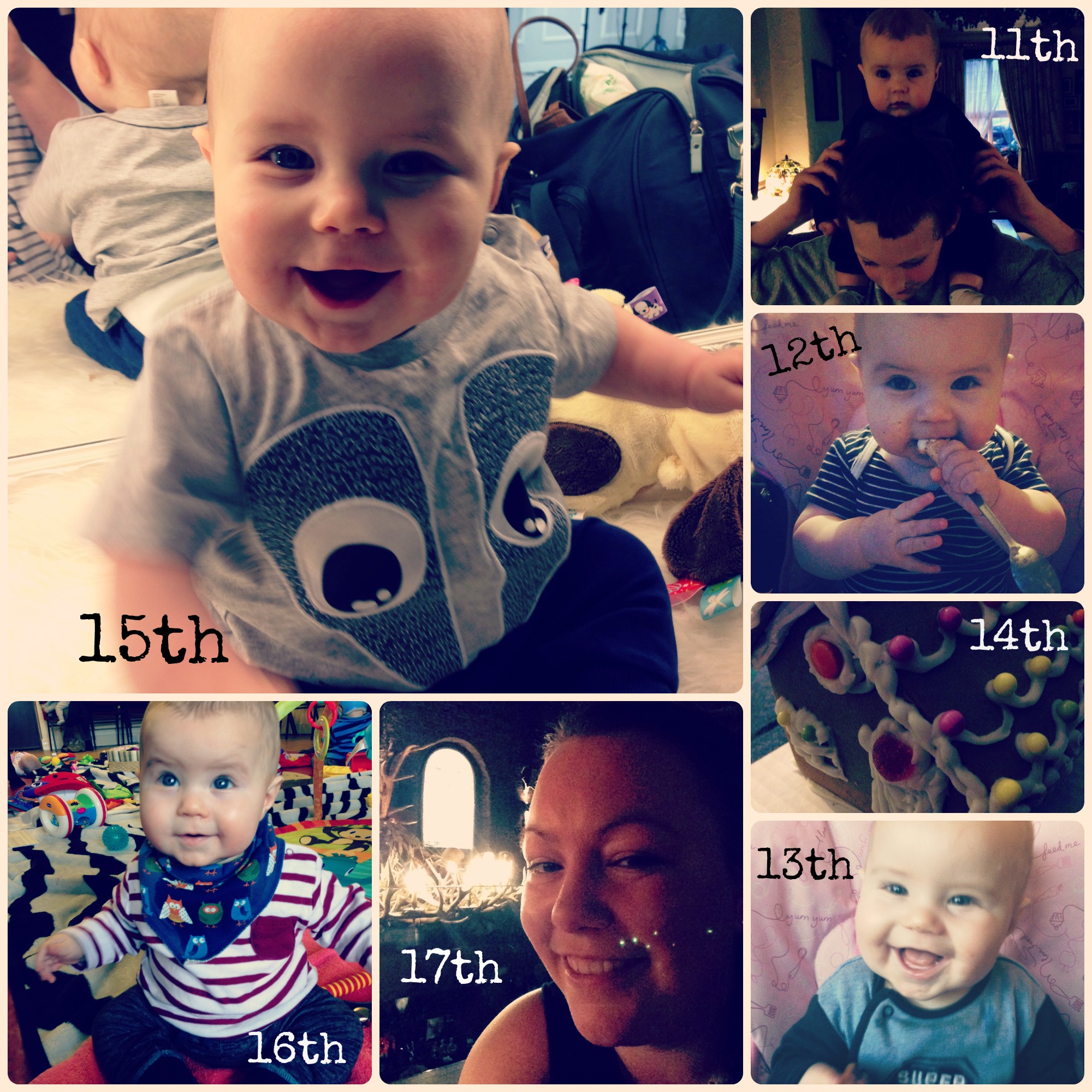Lovely photos, what a happy baby. Yum at the gingerbread house.