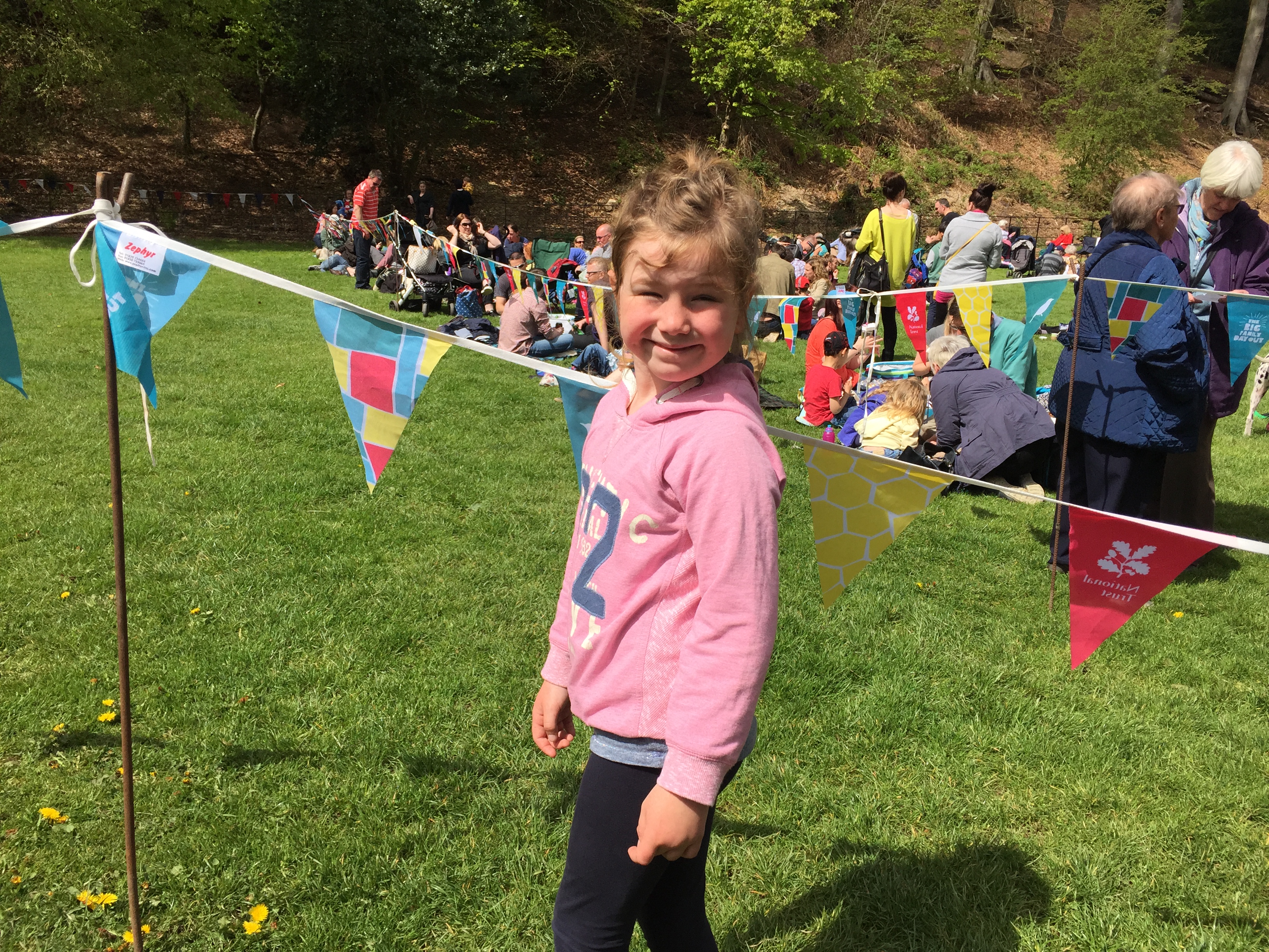 Whilst we were eating our spuds we watched the May Pole dance, the munchkin was very impressed with the dancing and how the ribbons didn’t get knotted together. We wandered into the gardens to watch the Punch and Judy show and try out some Victorian toys. We spent ages at the toy marquee, as she tried stilts, skipping and a whole host of other wooden toys. We then had a look at the sewing tea party table. The munchkin had a go at adding a strand of material to a rug. It was interesting to find out how these would have been made out of old clothes and rags, and the lovely lady giving the talk was great at setting the scene. There was also a dress up marquee and a craft area but they were really, really busy and the munchkin decided she didn’t want to wait around to look.