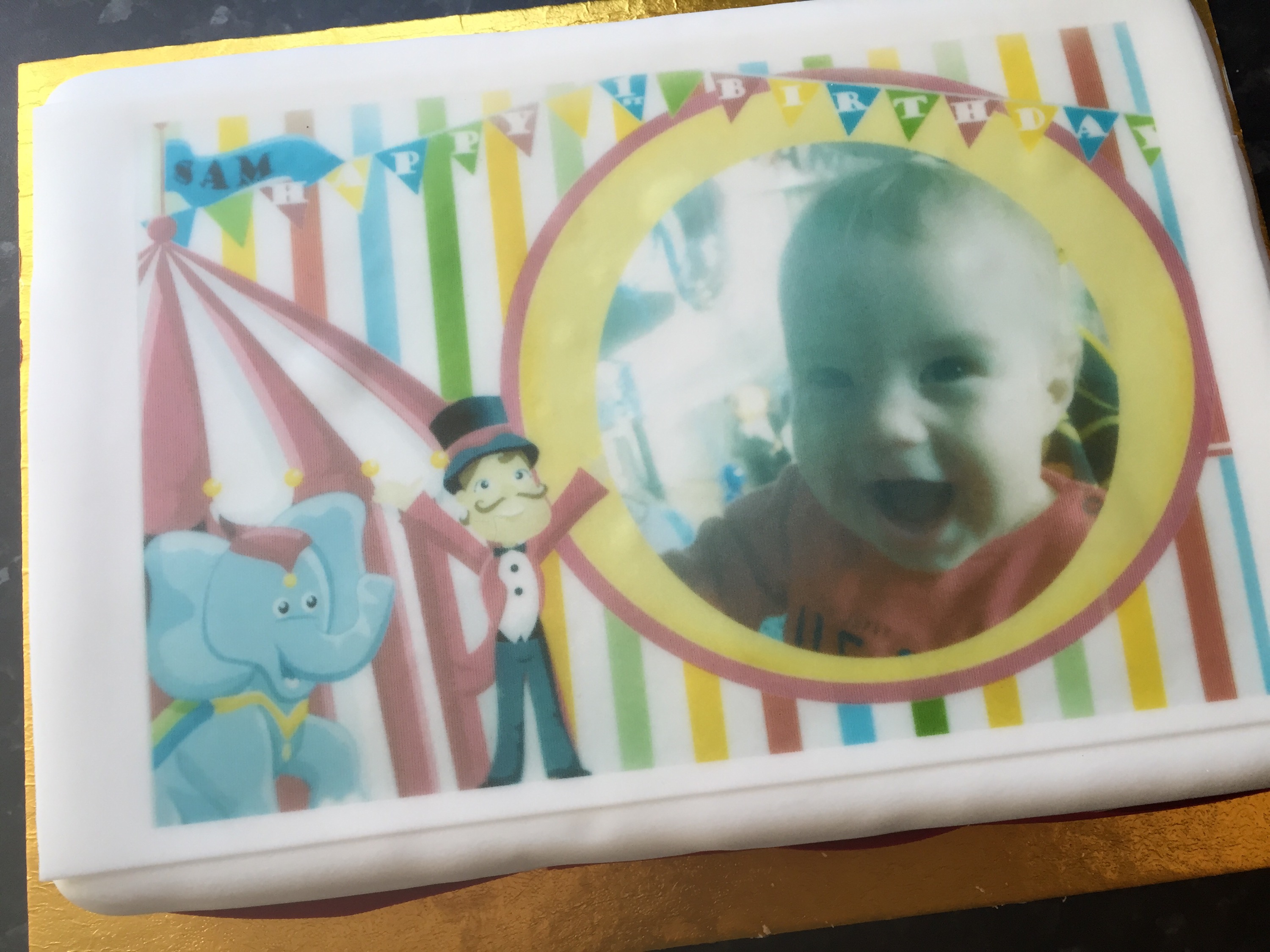 After work and a mini nightmare buying a cake with a photo on it in a well known supermarket (15 minute job took nearly 60, broken memory card, machine not compatible with iPhones, the printing at the complete opposite end of the shop & scanning of a photo 100s of times cause it kept cropping off the letters) we were all home together. Our wonderful friends popped round to see him, his fake but much loved Aunties and Uncles. He was so excited to open his presents, nothing like his sister who just rips everything open in one go, he wanted everything opening so he could play (chew it) straight away.